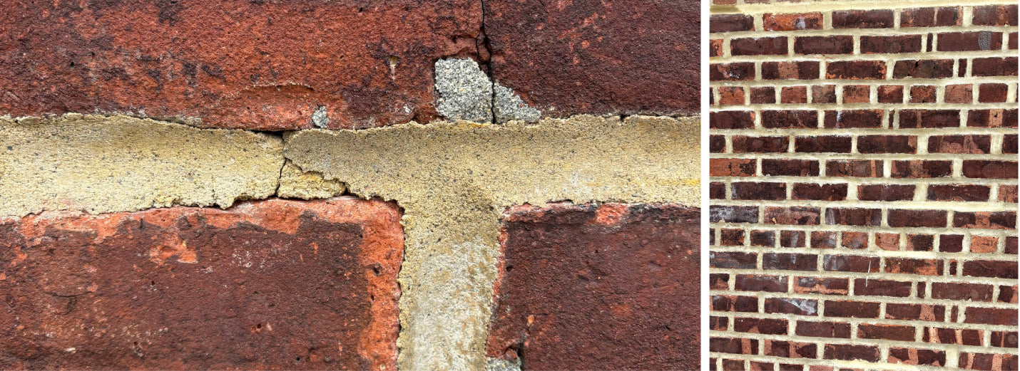 Pre-cleaning & treatment. Notice the worn brick & mortar joints.