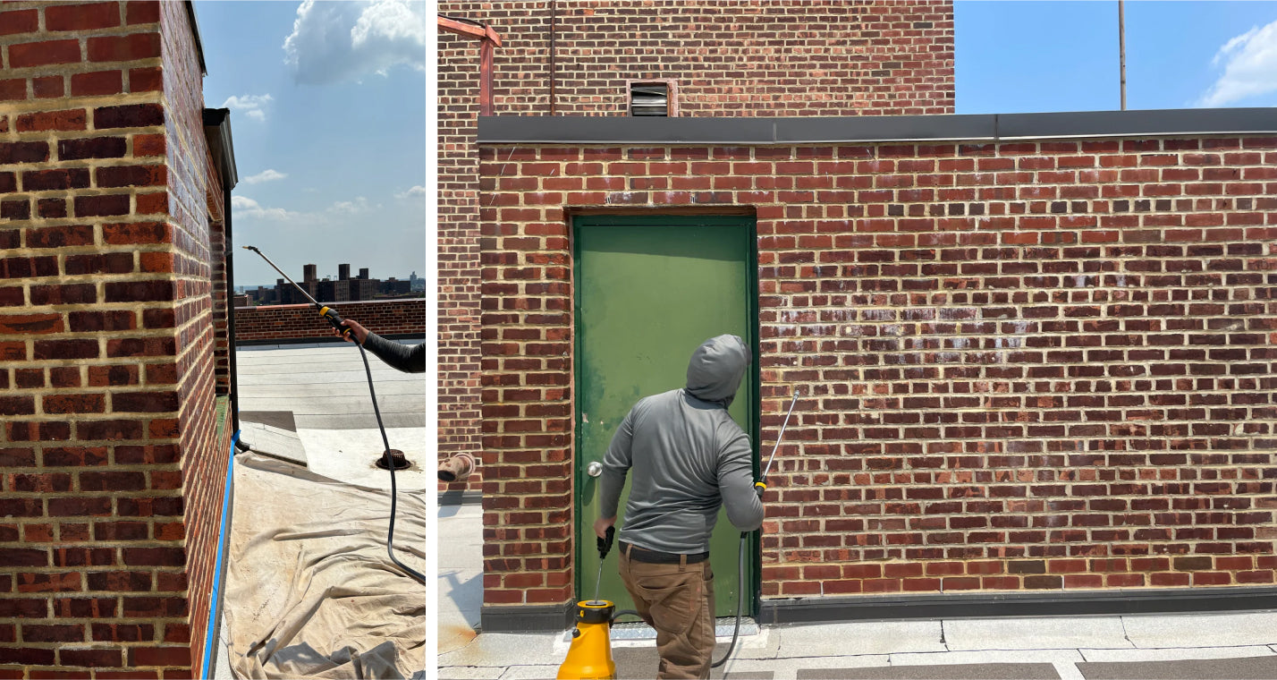 Parkchester, a large community in the east Bronx, New York City, consists of 171 residential buildings. Recently, several of these buildings experienced water ingress, which was traced to rainwater seeping through the brick and mortar of the rooftop bulkheads. Addressing these leaks became critical as the weather turned rainier, and a timely, effective solution was required to prevent further damage.